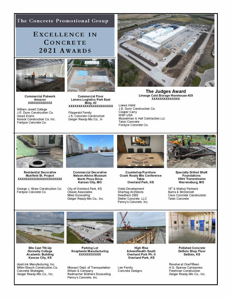 Gallery 2025 Holiday Party/Awards 2025 Pavement and Parking Lot Seminar 2025 Sporting Clay Shoot Excellence in Concrete Awards 2025 Excellence in Concrete Winners pg 1 2025 Excellence in Concrete Winners pg 2 2024 Excellence in Concrete Winners pg 1 2024 Excellence in Concrete Winners pg 2 2023 Excellence in Concrete Winners pg 1 2023 Excellence in Concrete Winners pg 2 2022 Excellence in Concrete Winners pg 1 2022 Excellence in Concrete Winners pg 2 2021 Excellence in Concrete Winners pg 1 2021 Excellence in Concrete Winners pg 2 2020 Excellence in Concrete Winners pg 1 2020 Excellence in Concrete Winners pg 2 2019 Excellence in Concrete Winners pg 1 2019 Excellence in Concrete Winners pg 2 2018 Excellence in Concrete Winners pg 1 2018 Excellence in Concrete Winners pg 2 2016 Excellence in Concrete Winners pg 1 2016 Excellence in Concrete Winners pg 2 2015 Excellence in Concrete Winners pg 1 2015 Excellence in Concrete Winners pg 2 2014 Excellence in Concrete Winners pg 1 2014 Excellence in Concrete Winners pg 2 2013 Excellence in Concrete Winners pg1 2013 Excellence in Concrete Winners pg 2 2012 Excellence in Concrete Winners pg 1 2012 Excellence in Concrete Winners pg 2 Sporting Clays 1st Place Individal